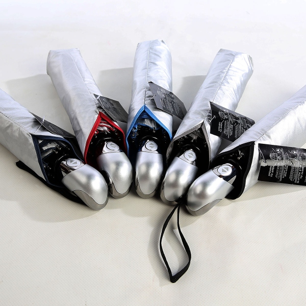 UMB0129 Auto Open and Close Silver Handle Foldable Umbrella